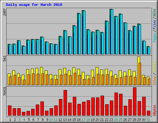 | Day | Hits | Files | Pages | Visits | Sites | KBytes | ||||||